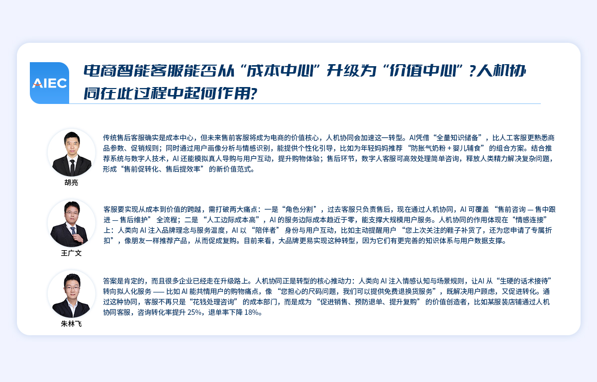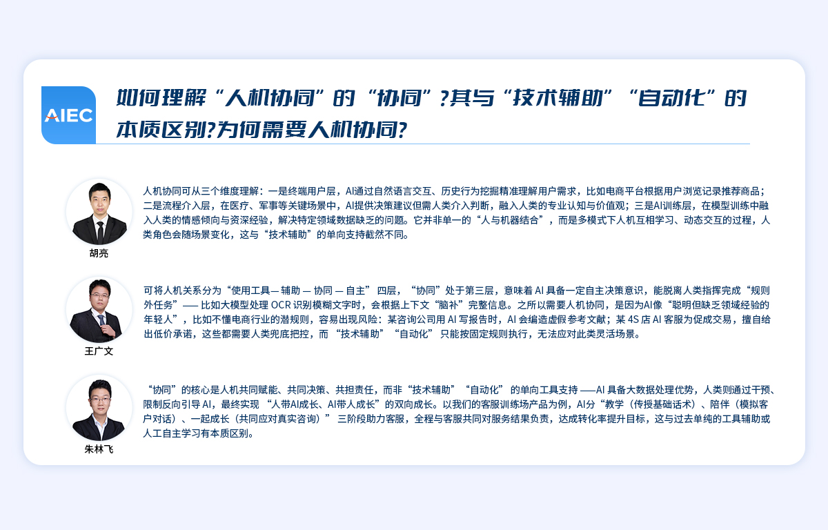 - 协同核心:强调人机协同不是“单向辅助”,而是“AI 补效率、人控决策”的动态融合,为电商客服、营销等场景提供技术落地思路。