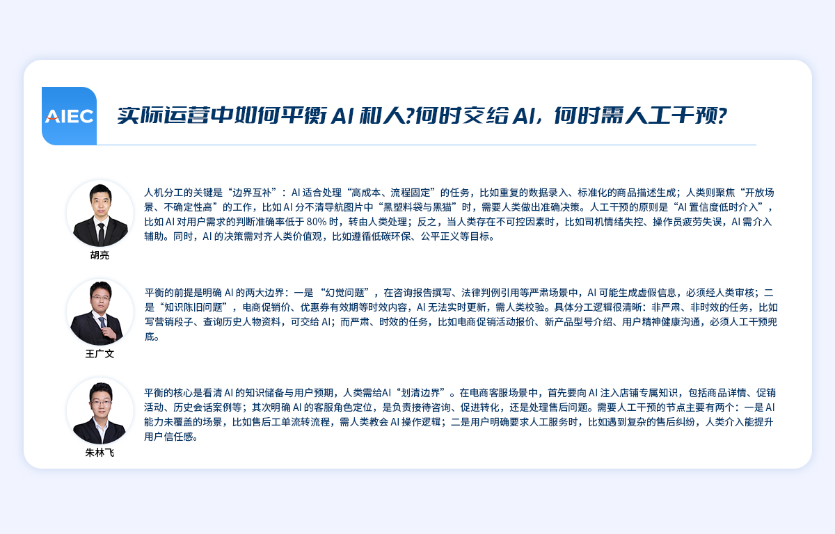 本次AIEC第二期活动以“干货满满、落地导向”获现场好评:从胡亮教授的跨模态技术解析,到三位嘉宾针对“协同本质、人机平衡、客服转型”的实战献策,再到技术难题的现场拆解,全程紧扣电商行业真需求。